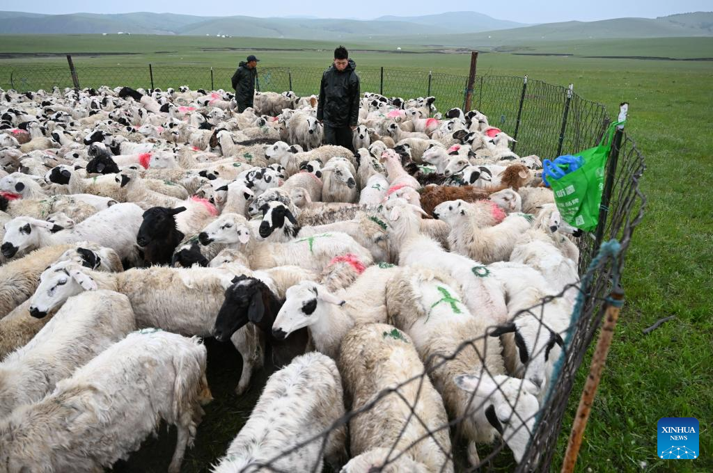 Saintsogt gathers the livestock at their winter campsite before departing for the summer campsite on Ar Horqin Grassland, Chifeng City of north China's Inner Mongolia Autonomous Region, June 13, 2025.