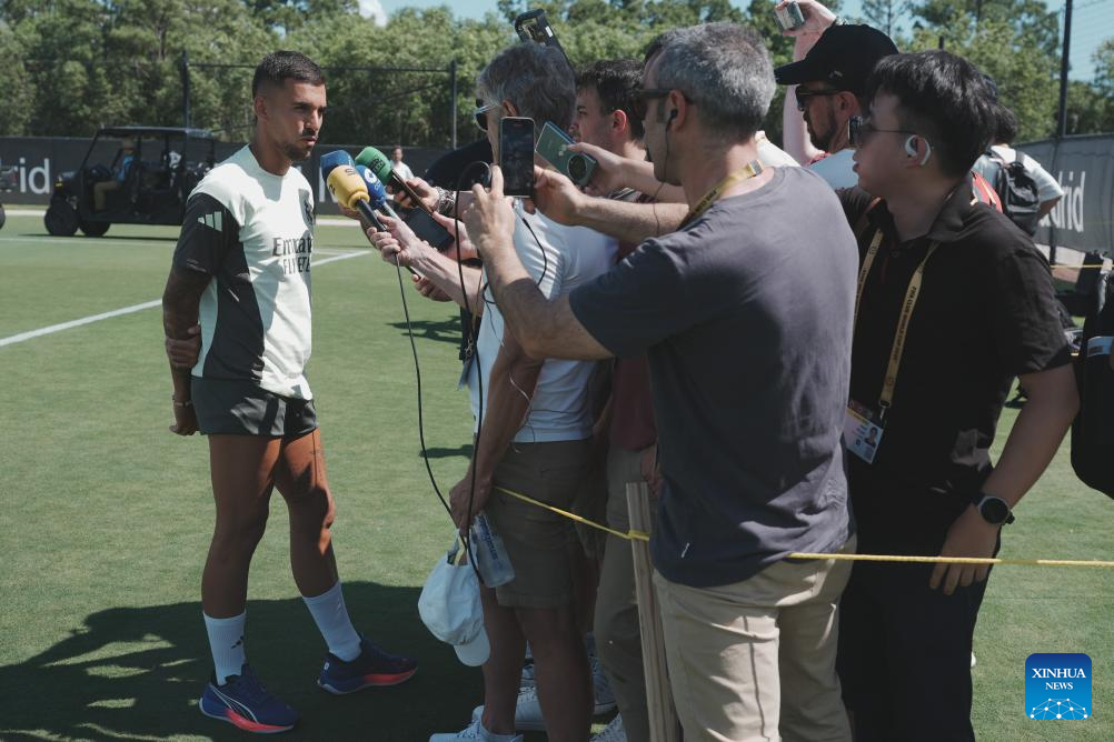 Dani Ceballos of Real Madrid is interviewed during a training session in Florida on June 17, 2025, ahead of the Club World Cup 2025 football match between Spain's Real Madrid and Saudi Arabia's Al Hilal. (Xinhua/Huang Zongzhi)