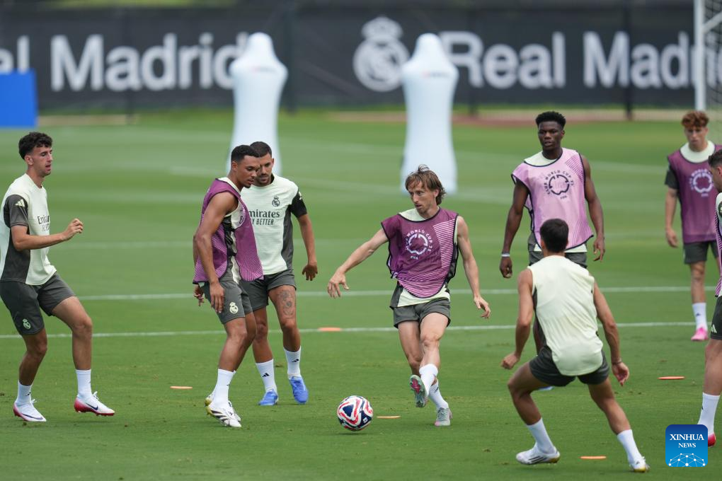 Players of Real Madrid attend a training session in Florida on June 17, 2025, ahead of the Club World Cup 2025 football match between Spain's Real Madrid and Saudi Arabia's Al Hilal. (Xinhua/Huang Zongzhi)
