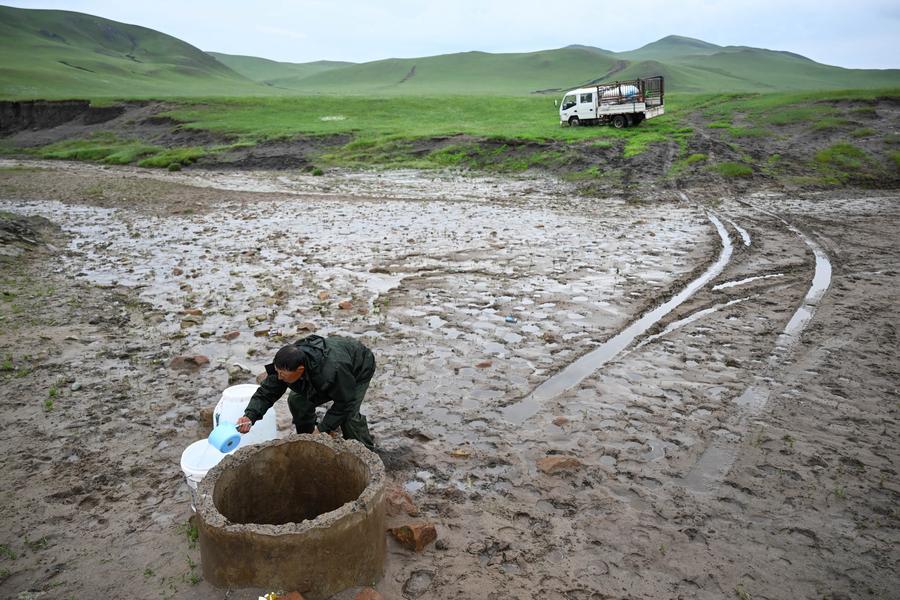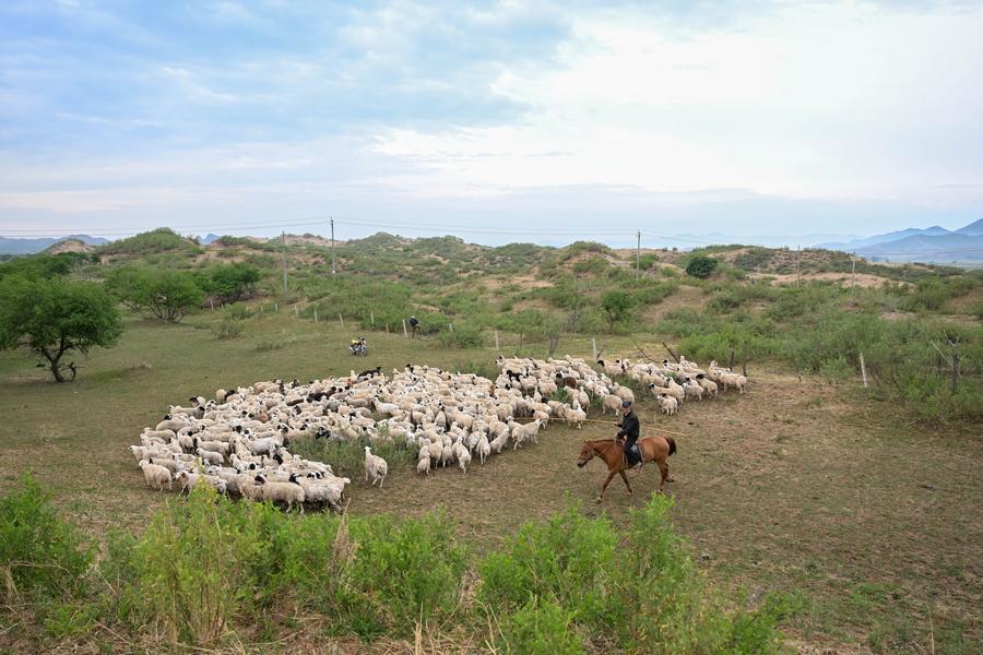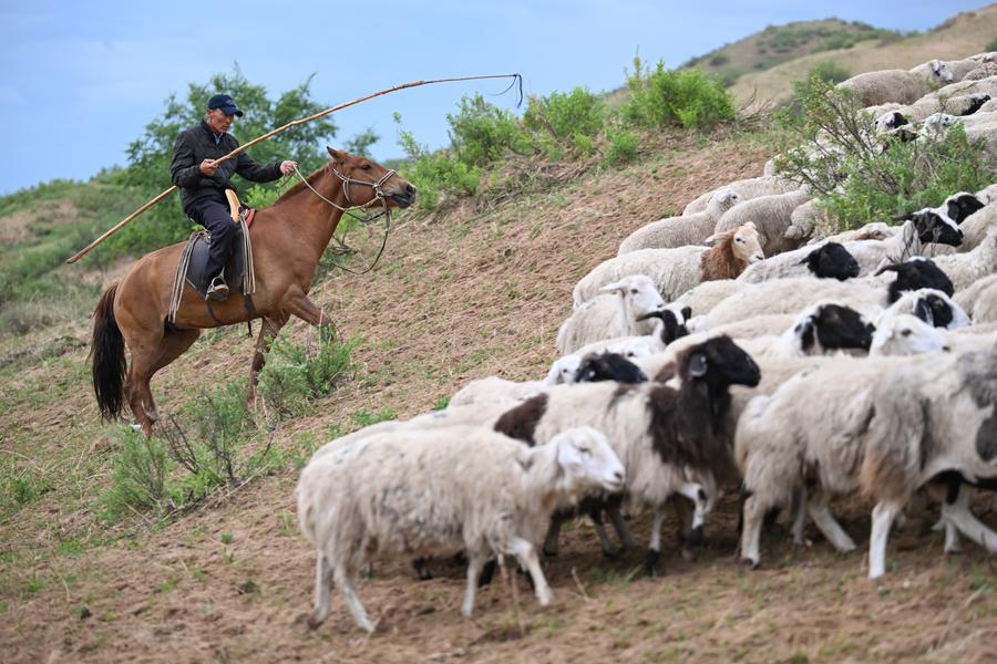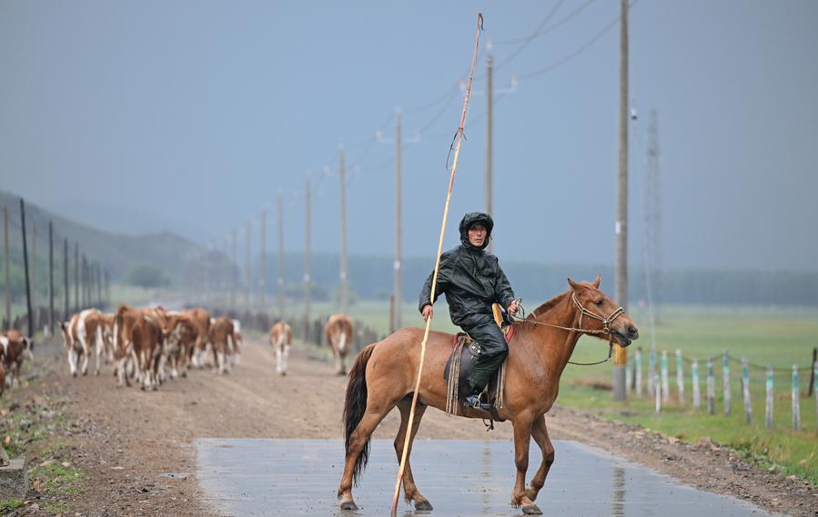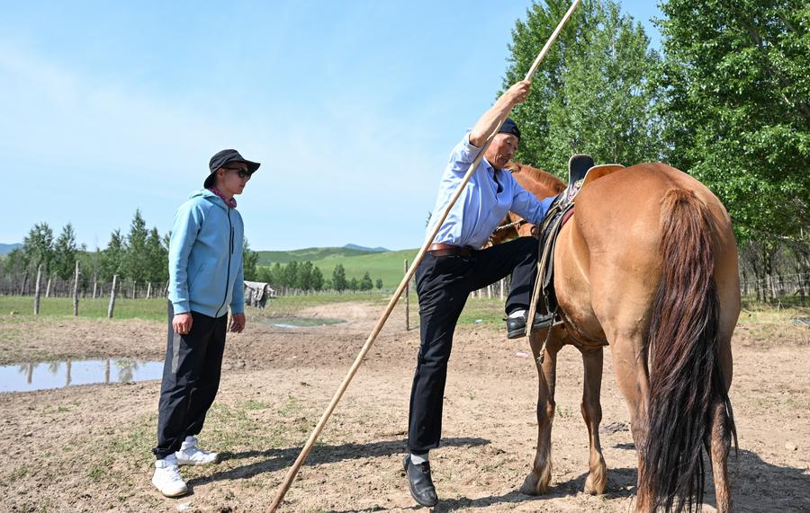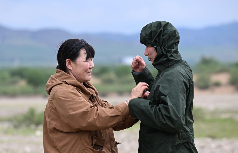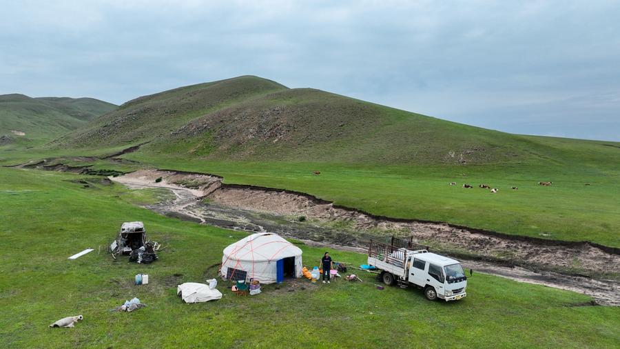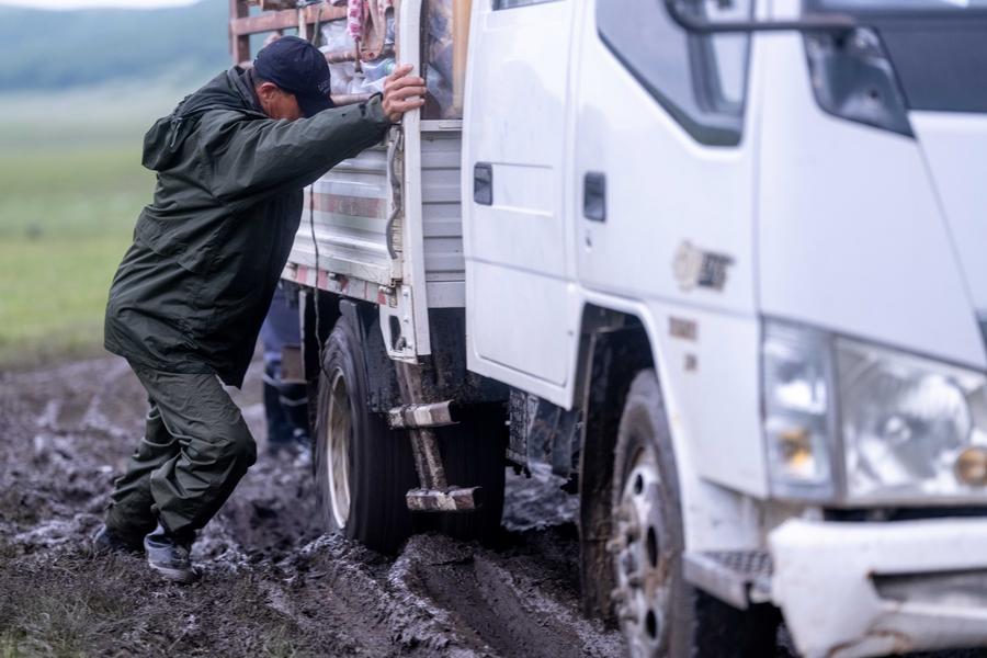 An aerial drone photo taken on June 14, 2025 shows herdsmen driving the livestock at night on the way to the summer campsite on Ar Horqin Grassland, Chifeng City of north China's Inner Mongolia Autonomous Region. (Xinhua/Ma Jinrui)A staff member of Gogodtai Han Ul national nature reserve counts the livestock entering the nature reserve in north China's Inner Mongolia Autonomous Region, June 14, 2025. (Xinhua/Ma Jinrui)Saintsogt's son operates a drone to check the number of the livestock on Ar Horqin Grassland, Chifeng City of north China's Inner Mongolia Autonomous Region, June 13, 2025. (Xinhua/Ma Jinrui)An aerial drone photo taken on June 14, 2025 shows herders waiting for entering the Gogodtai Han Ul national nature reserve in north China's Inner Mongolia Autonomous Region. (Xinhua/Ma Jinrui)Saintsogt's son (2nd R) drives sheep in rain on his way to the summer campsite on Ar Horqin Grassland, Chifeng City of north China's Inner Mongolia Autonomous Region, June 13, 2025. (Xinhua/Bei He)An aerial drone photo shows Saintsogt's son (L) riding a motorcycle to drive the livestock on his way to the summer campsite on Ar Horqin Grassland, Chifeng City of north China's Inner Mongolia Autonomous Region, June 14, 2025. (Xinhua/Ma Jinrui)Saintsogt gathers the livestock at the winter campsite before departing for the summer campsite on Ar Horqin Grassland, Chifeng City of north China's Inner Mongolia Autonomous Region, June 13, 2025. (Xinhua/Bei He)Saintsogt's wife drives the cattle on his way to the summer campsite on Ar Horqin Grassland, Chifeng City of north China's Inner Mongolia Autonomous Region, June 14, 2025. (Xinhua/Bei He)Saintsogt (R) has a meal with his wife and nephew at a Mongolian yurt on Ar Horqin Grassland, Chifeng City of north China's Inner Mongolia Autonomous Region, June 14, 2025. (Xinhua/Ma Jinrui)Saintsogt (R) talks with other herdsmen on their way to the summer campsite on Ar Horqin Grassland, Chifeng City of north China's Inner Mongolia Autonomous Region, June 13, 2025. (Xinhua/Ma Jinrui)Saintsogt's son seeks for a sick sheep after arriving at the summer campsite on Ar Horqin Grassland, Chifeng City of north China's Inner Mongolia Autonomous Region, June 15, 2025. (Xinhua/Bei He)An aerial drone photo taken on June 15, 2025 shows a Mongolian yurt of Saintsogt at his summer campsite on Ar Horqin Grassland, Chifeng City of north China's Inner Mongolia Autonomous Region. (Xinhua/Bei He)Saintsogt's wife arranges bedding at home before departing for the summer campsite on Ar Horqin Grassland, Chifeng City of north China's Inner Mongolia Autonomous Region, June 13, 2025. (Xinhua/Bei He)Saintsogt (C), his wife (R) and son pose for a group photo at their summer campsite on Ar Horqin Grassland, Chifeng City of north China's Inner Mongolia Autonomous Region, June 15, 2025. (Xinhua/Bei He)Saintsogt takes a newly born calf off the truck after arriving at the summer campsite on Ar Horqin Grassland, Chifeng City of north China's Inner Mongolia Autonomous Region, June 15, 2025. (Xinhua/Bei He)Saintsogt drives cattle in the rain on his way to the summer campsite on Ar Horqin Grassland, Chifeng City of north China's Inner Mongolia Autonomous Region, June 13, 2025. (Xinhua/Bei He)Saintsogt gathers the livestock at their winter campsite before departing for the summer campsite on Ar Horqin Grassland, Chifeng City of north China's Inner Mongolia Autonomous Region, June 13, 2025. (Xinhua/Bei He)Saintsogt hugs a newly born calf on his way to the summer campsite on Ar Horqin Grassland, Chifeng City of north China's Inner Mongolia Autonomous Region, June 14, 2025. (Xinhua/Bei He)Saintsogt fetches water at a spring at the summer campsite on Ar Horqin Grassland, Chifeng City of north China's Inner Mongolia Autonomous Region, June 15, 2025. (Xinhua/Bei He)Saintsogt's wife (L) helps her son to wear a raincoat on their way to the summer campsite on Ar Horqin Grassland, Chifeng City of north China's Inner Mongolia Autonomous Region, June 13, 2025. (Xinhua/Bei He)Saintsogt (R) shows his son how to get on the horse on their way to the summer campsite on Ar Horqin Grassland, Chifeng City of north China's Inner Mongolia Autonomous Region, June 14, 2025. (Xinhua/Bei He)Saintsogt's son wades through the water with two sheep on his way to the summer campsite on Ar Horqin Grassland, Chifeng City of north China's Inner Mongolia Autonomous Region, June 13, 2025. (Xinhua/Ma Jinrui)Saintsogt pushes his truck which is stranded in the mud on his way to the summer campsite on Ar Horqin Grassland, Chifeng City of north China's Inner Mongolia Autonomous Region, June 14, 2025. (Xinhua/Ma Jinrui)■