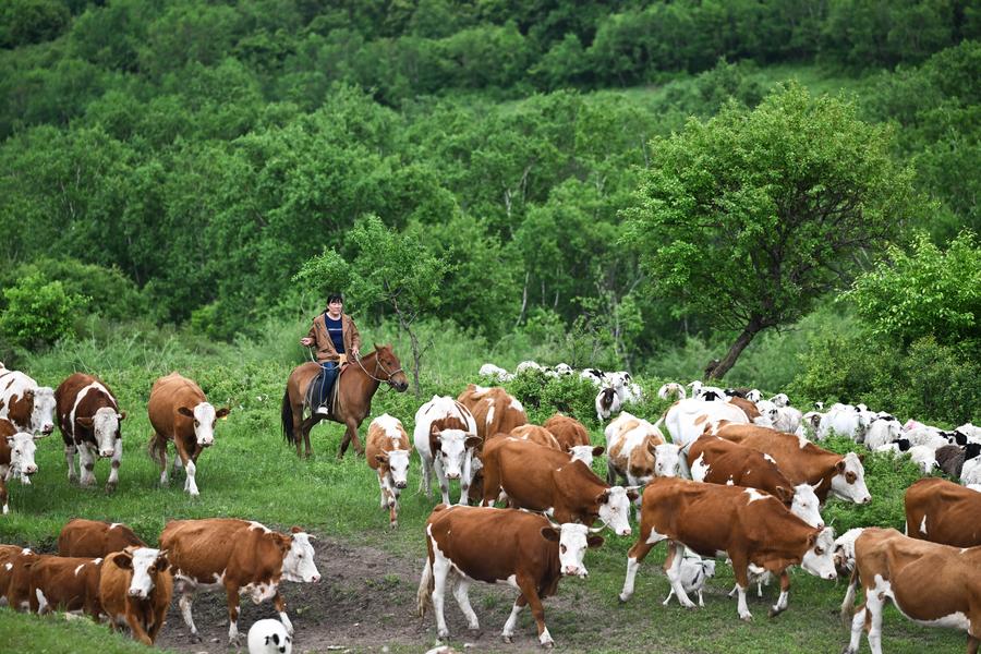 CHIFENG, June 17 (Xinhua) -- Saintsogt, 55, a herdsman in Bayin-undur of Ar Horqin Banner, north China's Inner Mongolia Autonomous Region, is busy with the annual summer migration covering a distance of about 100 kilometers. For the past four decades, he has completed the migration every year.