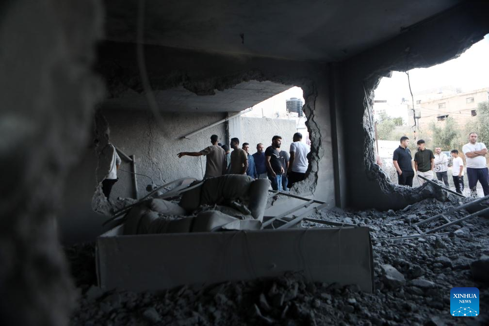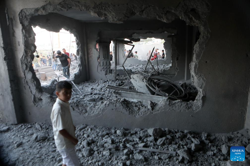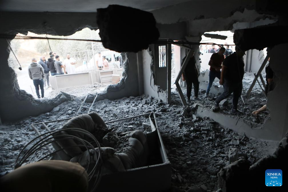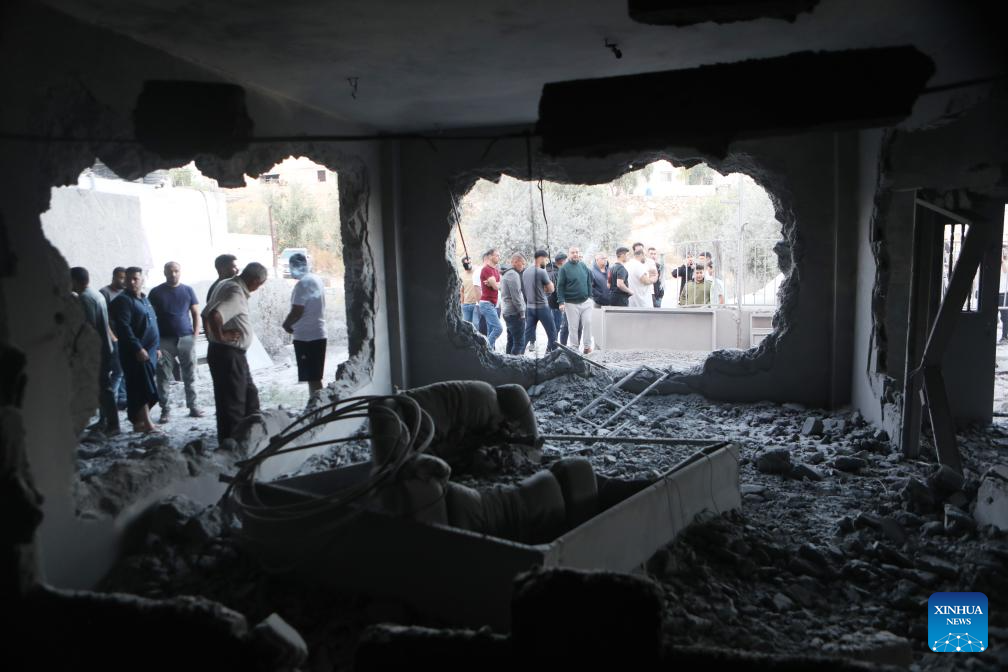 Palestinians inspect a damaged house in the village of Beit Awa, west of Hebron, southern West Bank, on June 17, 2025. (Photo by Mamoun Wazwaz/Xinhua)