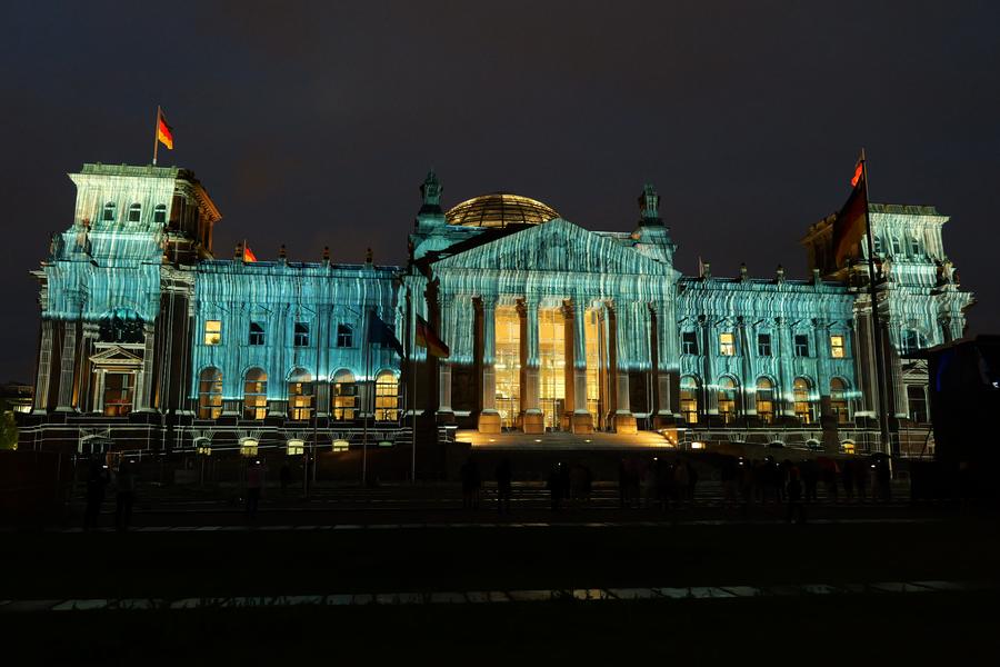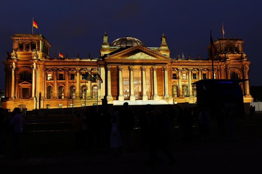 BERLIN, June 16 (Xinhua) -- In the midsummer nights of Berlin, the Reichstag is once again "wrapped," not in fabric this time, but in light.