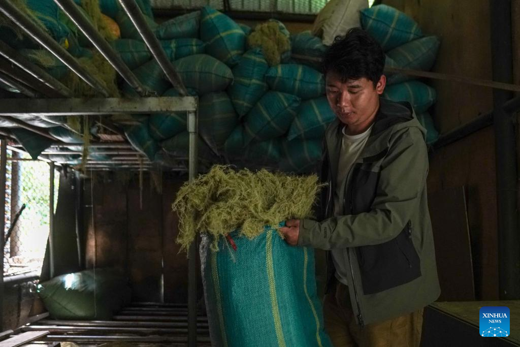 A staff member from the Baima Snow Mountain National Nature Reserve prepares usnea for feeding the black-and-white snub-nosed monkeys in Deqen Tibetan Autonomous Prefecture, southwest China's Yunnan Province, June 15, 2025. The black-and-white snub-nosed monkey, also known as the Yunnan golden hair monkey, is a national first-class protected animal of China. The species is also on the Red List of the International Union for Conservation of Nature (IUCN).