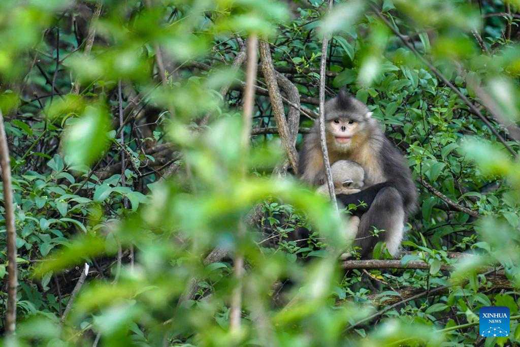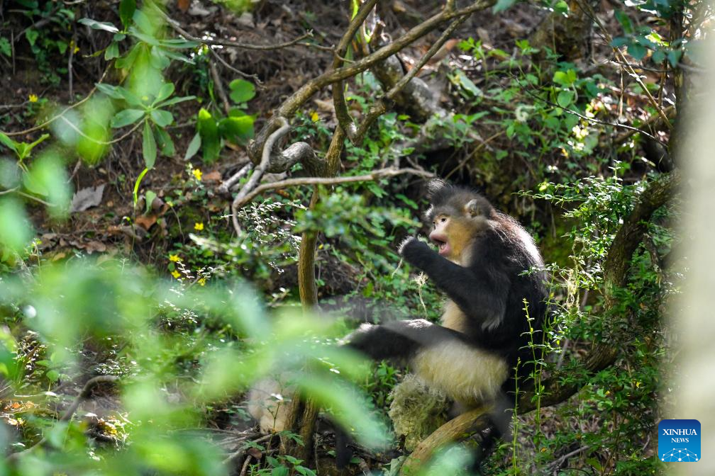 Thanks to the joint efforts of the staff members of the reserve, researchers and social forces, the number of Yunnan golden hair monkeys in the reserve has risen from around 540 in 1985 to around 2,800 at present, accounting for more than 65 percent of the total population of the monkeys in the country. (Photo by Peng Yikai/Xinhua)