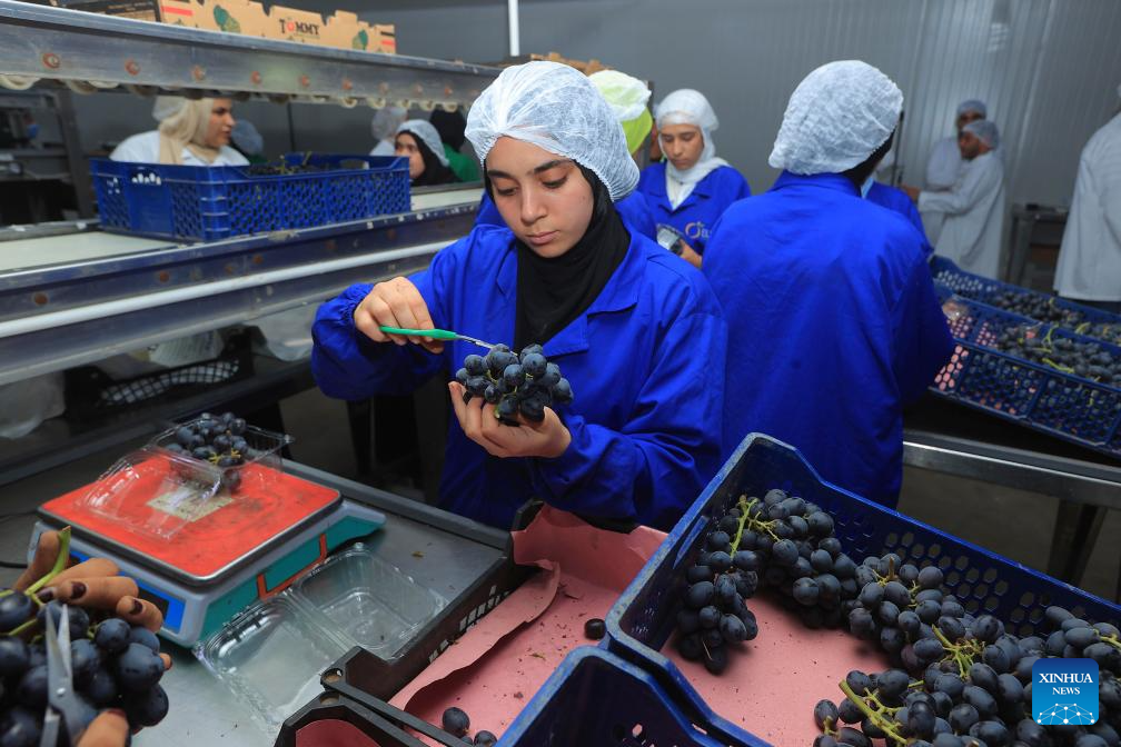 Workers package newly-harvested grapes at a factory in Menoufia Governorate, Egypt, on June 17, 2025. (Xinhua/Ahmed Gomaa)