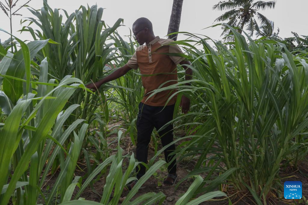 Joel Bisoma checks Juncao grass he grows at his farm in Dar es Salaam, Tanzania, June 5, 2025. (Xinhua/Emmanuel Herman)
