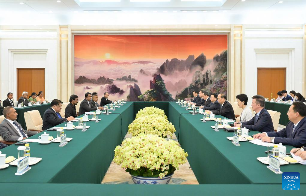 BEIJING, June 18 (Xinhua) -- Shi Taifeng, a member of the Political Bureau of the Communist Party of China (CPC) Central Committee and head of the CPC Central Committee's Organization Department, met with a delegation of senior cadres from Janatha Vimukthi Peramuna (JVP) of Sri Lanka, led by its General Secretary Tilvin Silva, in Beijing on Wednesday.