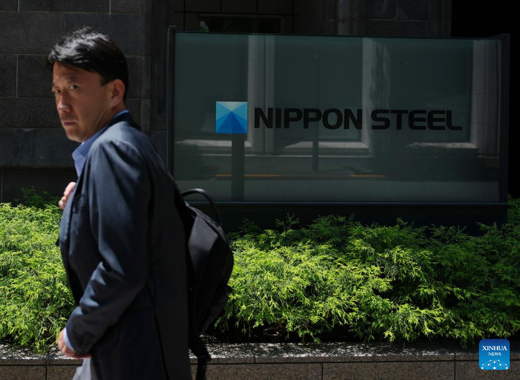 A man walks past a logo of Nippon Steel in Tokyo, Japan, June 17, 2025. Nippon Steel announced Wednesday that it has officially completed its acquisition of U.S. Steel, making the American steelmaker a wholly owned subsidiary. (Xinhua/Jia Haocheng)
