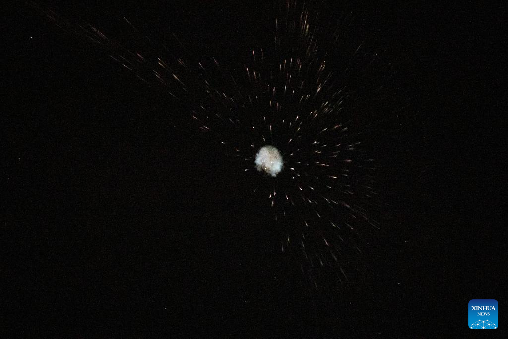 Israeli air defense system fires to intercept missiles over central Israel, on June 18, 2025. (Xinhua/Chen Junqing)