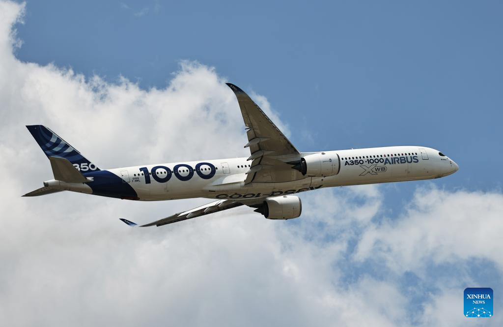 The 55th edition of the Paris Air Show officially opened on Monday and will run until June 22, with the participation of about 2,400 exhibitors from 48 countries and regions. (Xinhua/Gao Jing)