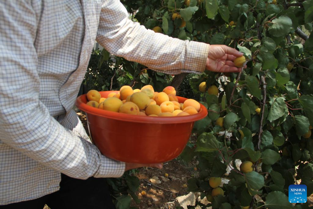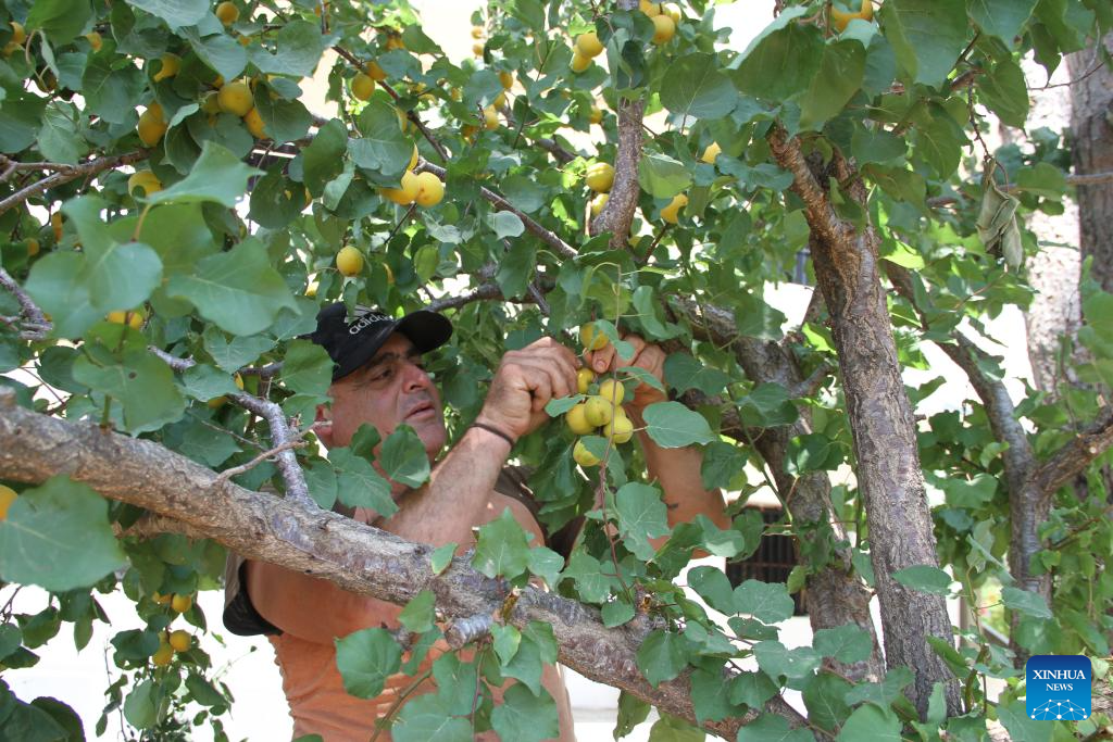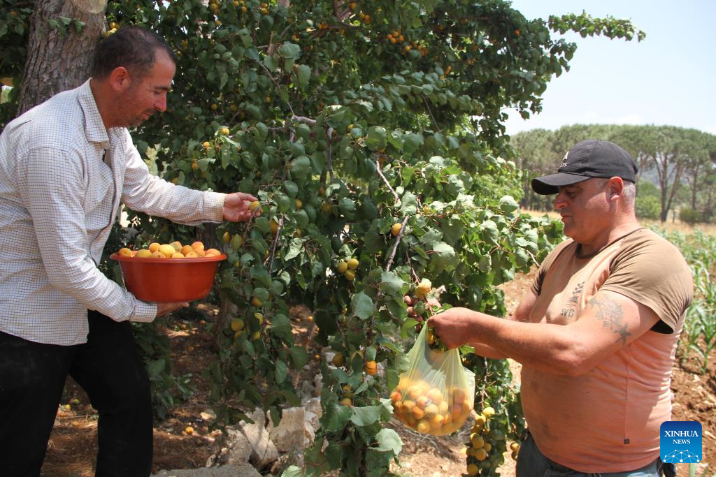Farmers harvest apricots in Baalbek, Lebanon, on June 17, 2025. (Photo by Taher Abu Hamdan/Xinhua)