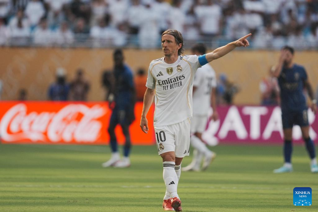 Luka Modric of Real Madrid gestures during the group H match between Real Madrid C. F. of Spain and Al Hilal of Saudi Arabia at the FIFA Club World Cup 2025 at the Hard Rock Stadium, Miami, the United States, June 18, 2025. (Xinhua/Huang Zongzhi)