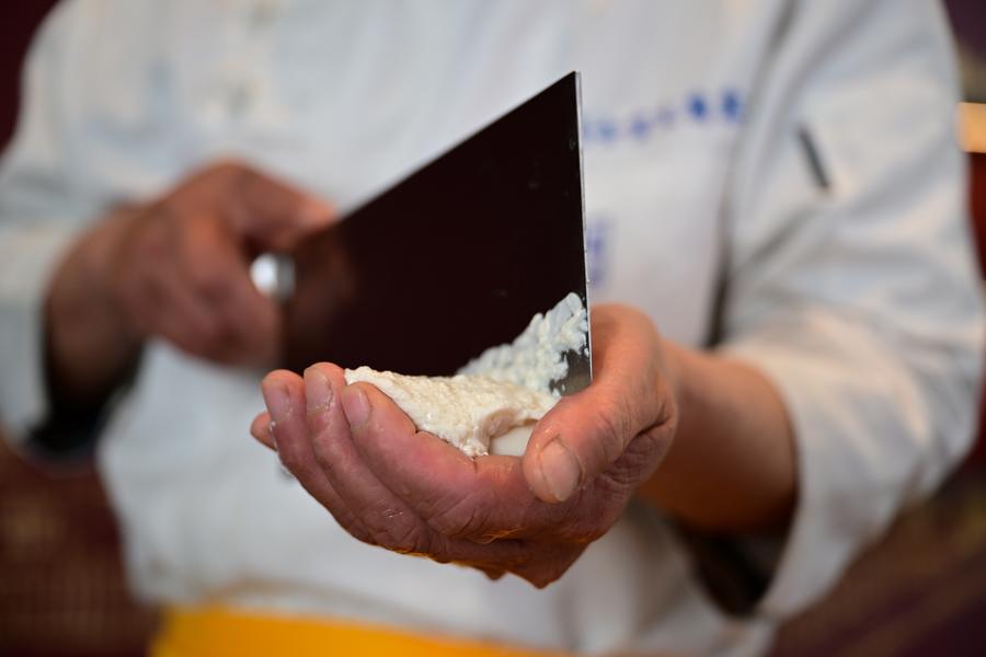 Hu Xuebing, a provincial intangible cultural heritage representative inheritor of the traditional tofu making skills, makes tofu at Daquan Village in Shouxian County, Huainan City, east China's Anhui Province, Jan. 15, 2025. (Xinhua/Zhou Mu)Hu Xuebing, a provincial intangible cultural heritage representative inheritor of the traditional tofu making skills, makes tofu at Daquan Village of Bagongshan Township in Shouxian County, Huainan City, east China's Anhui Province, Apirl 8, 2025. (Xinhua/Zhou Mu)Hu Xuebing, a provincial intangible cultural heritage representative inheritor of the traditional tofu making skills, makes tofu at Daquan Village of Bagongshan Township in Shouxian County, Huainan City, east China's Anhui Province, Jan. 15, 2025. (Xinhua/Zhou Mu)Zhang Shihong, an inheritor of the tofu banquet making skills, makes "Chrysanthemum-shaped tofu" in Shouxian County, Huainan City, east China's Anhui Province, April 8, 2025. (Xinhua/Zhou Mu)Zhang Shihong, an inheritor of the tofu banquet making skills, makes "Chrysanthemum-shaped tofu" in Shouxian County, Huainan City, east China's Anhui Province, April 8, 2025. (Xinhua/Zhou Mu)This photo taken on April 8, 2025 shows the "Chrysanthemum-shaped tofu" made by Zhang Shihong, an inheritor of the tofu banquet making skills, in Shouxian County, Huainan City, east China's Anhui Province. (Xinhua/Zhou Mu)This photo taken on April 8, 2025 shows the tofu dumplings made by Zhang Shihong, an inheritor of the tofu banquet making skills, in Shouxian County, Huainan City, east China's Anhui Province. (Xinhua/Zhou Mu)Zhang Shihong, an inheritor of the tofu banquet making skills, makes tofu dumplings in Shouxian County, Huainan City, east China's Anhui Province, April 8, 2025. (Xinhua/Zhou Mu)Zhang Shihong, an inheritor of the tofu banquet making skills, makes tofu dumplings in Shouxian County, Huainan City, east China's Anhui Province, April 8, 2025. (Xinhua/Zhou Mu)