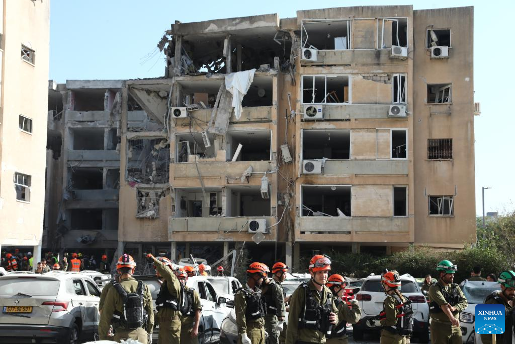 Israeli security and rescue forces work at the scene of a missile attack in Holon, central Israel, on June 19, 2025. Iran targeted Israel's military intelligence facilities in its strikes on the southern part of the country on Thursday morning, not a hospital as was reported by some media outlets, Iran's state news agency IRNA said.(Gideon Markowicz/JINI via Xinhua)