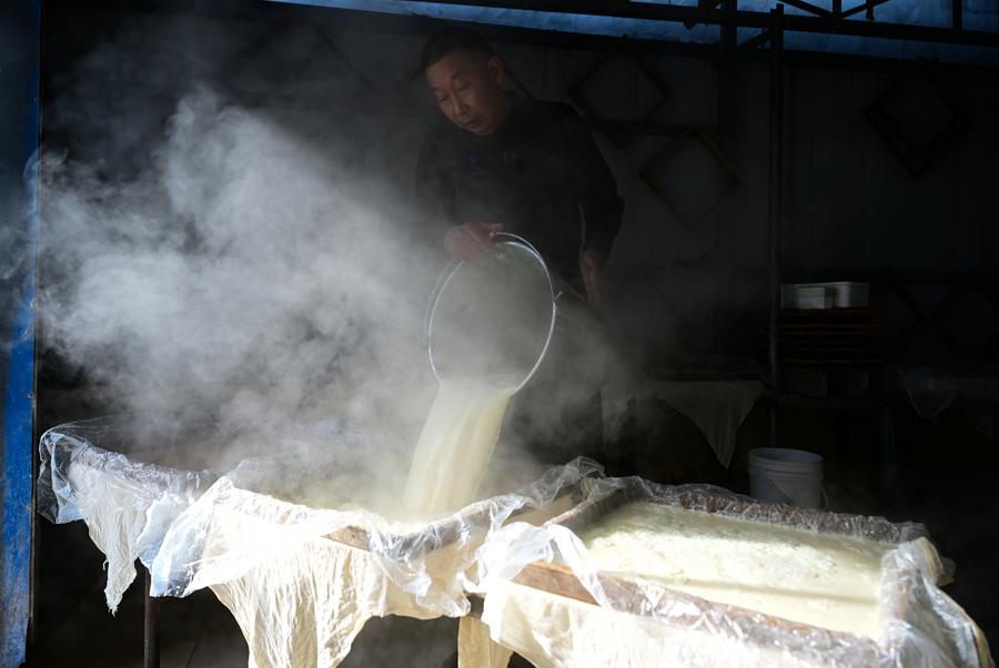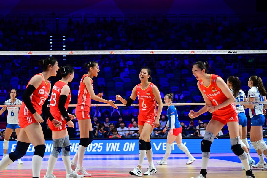 An aerial drone photo taken on June 18, 2025 shows a swivel bridge along Xiong'an-Baoding section of Xiong'an-Xinzhou high-speed railway after rotating to its desired position over Beijing-Guangzhou high-speed railway in Baoding, north China's Hebei Province. The swivel bridge, constructed by China Railway 14th Bureau Group Co., Ltd., is a key control project of Xiong'an-Xinzhou high-speed railway, and successfully rotated to its desired position here on Wednesday. The Xiong'an-Xinzhou high-speed railway is an important section of Beijing-Kunming high-speed railway that belongs to a greater high-speed rail artery network consisting eight vertical lines and eight horizontal lines in the country. (Xinhua/Xing Guangli)A drone light show is staged in southwest China's Chongqing Municipality, June 17, 2025. This event, with 11,787 drones forming luminous patterns across the night sky, was held here on Tuesday evening, aiming to set a new Guinness world record of its kind. (Xinhua/Huang Wei)Hu Xuebing, a provincial intangible cultural heritage representative inheritor of the traditional tofu making skills, makes tofu at Daquan Village of Bagongshan Township in Shouxian County, Huainan City, east China's Anhui Province, Jan. 15, 2025. For thousands of years, the traditional tofu-making techniques have been carried on from generation to generation in Bagongshan Township of Shouxian County. This technique in 2014 was included in the fourth batch of the national representative list of intangible cultural heritage of China. (Xinhua/Zhou Mu)People visit the 31st Beijing International Book Fair at the China National Convention Center in Beijing, capital of China, June 18, 2025. The 31st Beijing International Book Fair opened here on Wednesday, displaying around 220,000 books from China and abroad. Over 1,700 exhibitors from 80 countries and regions participated in the event, which will run through June 22, with Malaysia as this year's guest country of honor. (Xinhua/Zhang Chenlin)A pedestrian walks on a street in Tokyo, Japan, June 18, 2025. Tokyo and other regions in Japan have been hit by high temperatures in recent days. (Xinhua/Jia Haocheng)People visit the booth of Commercial Aircraft Corporation of China (COMAC) during the 55th Paris Air Show at Le Bourget Airport near Paris, France, June 17, 2025. The 55th edition of the Paris Air Show officially opened on Monday and will run until June 22. China is showcasing some of its top aviation products at the exhibition. (Xinhua/Gao Jing)Smoke rises following Israeli attacks in Tehran, capital of Iran, June 17, 2025. The Israeli military said over 70 Iranian aerial defense missile batteries and advanced detection radars had been destroyed in five waves of strikes carried out over recent days. Iran's Supreme Leader Ali Khamenei said on Wednesday that the country remains steadfast amid its conflict with Israel and will not surrender to anyone amid pressure, according to the Tasnim news agency. (Xinhua/Shadati)Players of China celebrate during the Pool 5 match between China and the Czech Republic at the Women's Volleyball Nations League (VNL) 2025 in Hong Kong, south China, June 18, 2025. (Xinhua/Zhu Wei)■