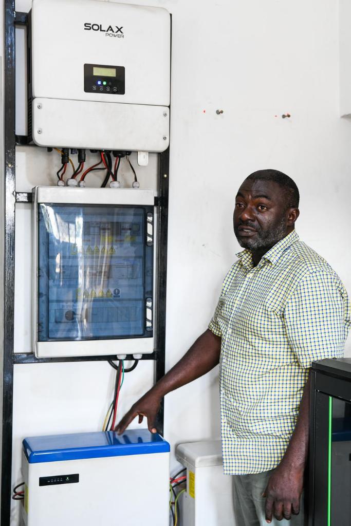 At his home warehouse, solar panels, batteries, and inverters are all made in China. "Most solar products in Cameroon come from China," he said. "If you use them properly, they last a long time."