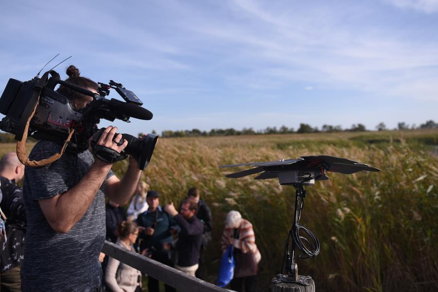 VIENNA, June 20 (Xinhua) -- At the end of a narrow bridge hidden among tall reeds, a secluded cabin sits on the water of the Neusiedler See-Seewinkel National Park in Austria. From its windows, lucky visitors can catch sight of rare birds that live in the area.