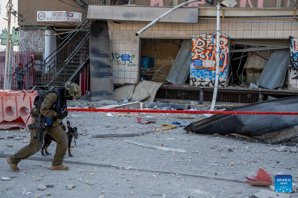 A member of Israeli security and rescue forces works at the scene of a missile attack from Iran, in Haifa, northern Israel, on June 20, 2025. A fresh barrage of missiles launched from Iran struck northern Israel on Friday, wounding 21 people and causing significant damage in the coastal city of Haifa, according to Israel's national emergency service Magen David Adom (MDA). (Miki Schauder/JINI via Xinhua)