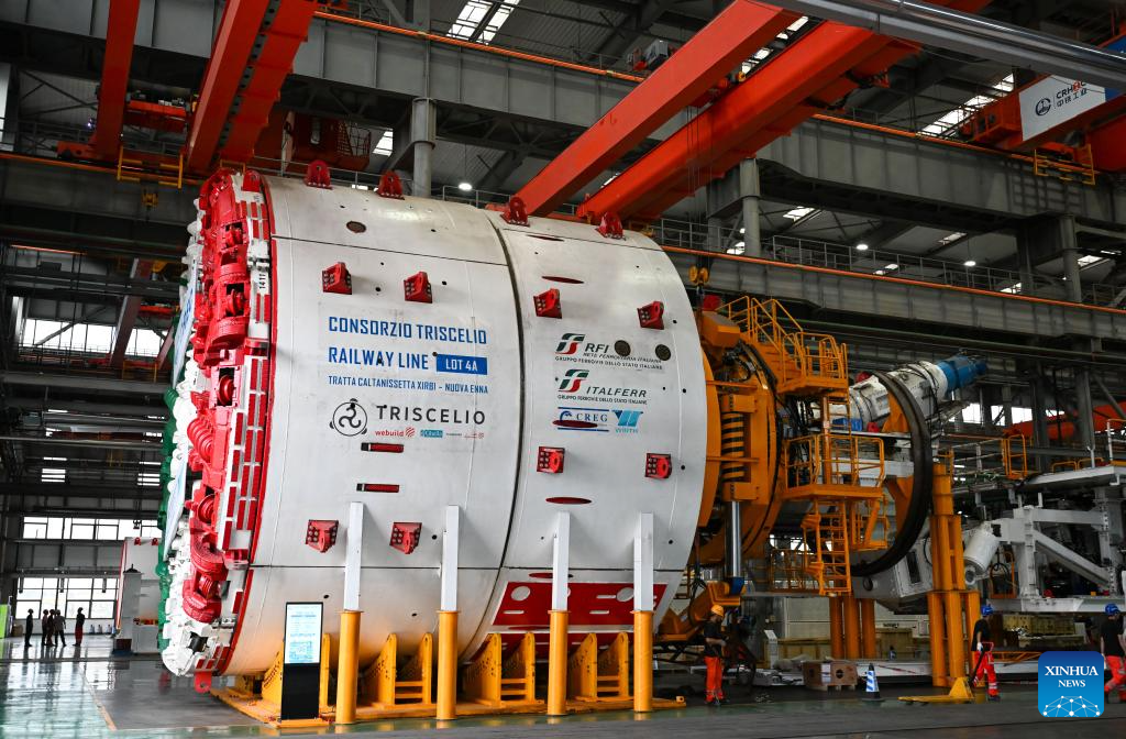 This photo shows a shield machine to be exported to Italy at Dongjiang port area in Tianjin Pilot Free Trade Zone (FTZ), north China's Tianjin, June 18, 2025. The Tianjin pilot FTZ was established in 2015. Over the past decade, the pilot FTZ in Tianjin municipality has yielded numerous achievements in institutional innovation.