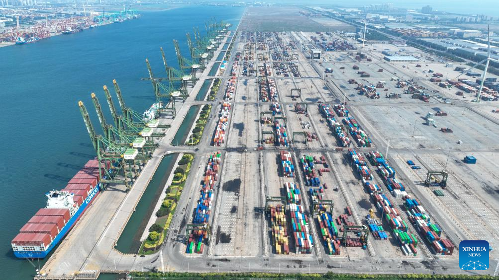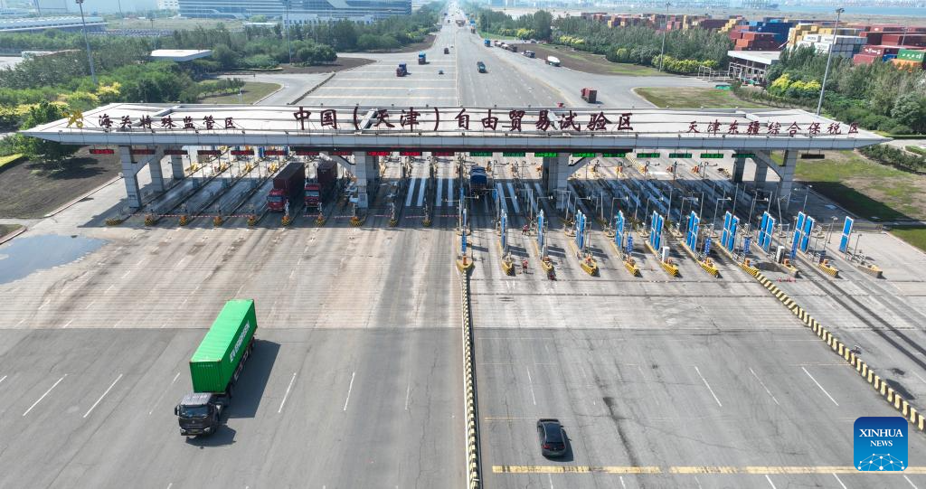 An aerial drone photo taken on June 20, 2025 shows a view of the Dongjiang port area in Tianjin Pilot Free Trade Zone (FTZ), north China's Tianjin. The Tianjin pilot FTZ was established in 2015. Over the past decade, the pilot FTZ in Tianjin municipality has yielded numerous achievements in institutional innovation.
