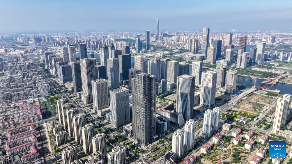 An aerial drone photo taken on June 20, 2025 shows a view of the Tianjin Pilot Free Trade Zone (FTZ) in north China's Tianjin. The Tianjin pilot FTZ was established in 2015. Over the past decade, the pilot FTZ in Tianjin municipality has yielded numerous achievements in institutional innovation.
