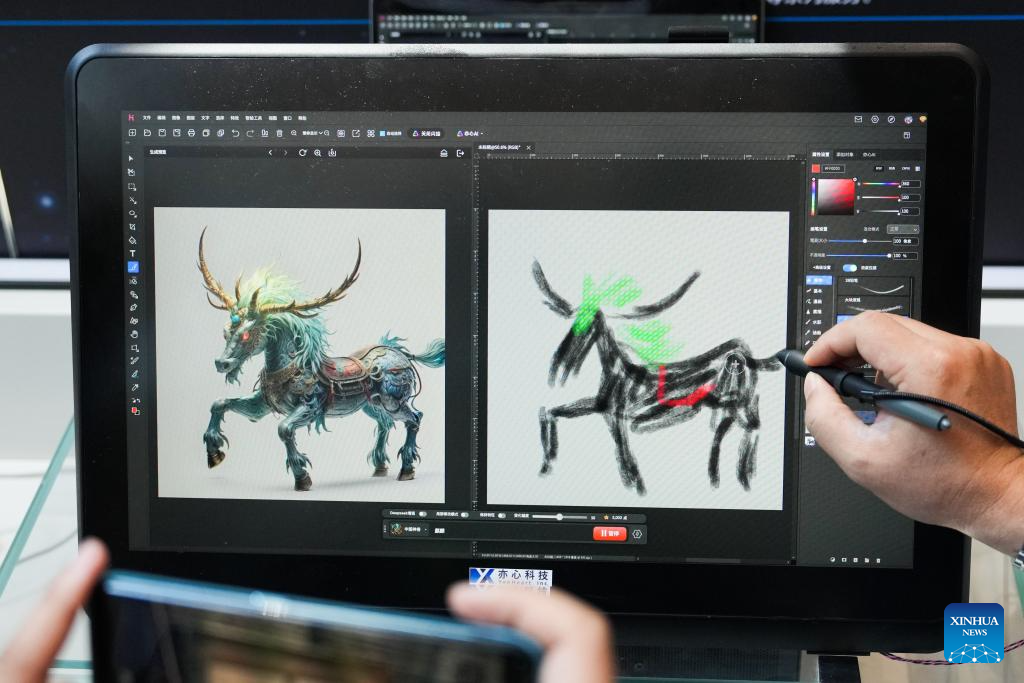 A staff member demonstrates AIGC capabilities of Wukong image software at ZGC Science Fiction Industry Innovation Center in Shijingshan District, Beijing, capital of China, June 20, 2025. In recent years, Shijingshan District of Beijing has been actively exploring the in-depth integrated development of culture and technology by making use of its industrial heritage and introducing the cutting-edge technologies. For years, the local science fiction industry has witnessed a revitalization, with 236 science fiction companies and institutions gathering here.