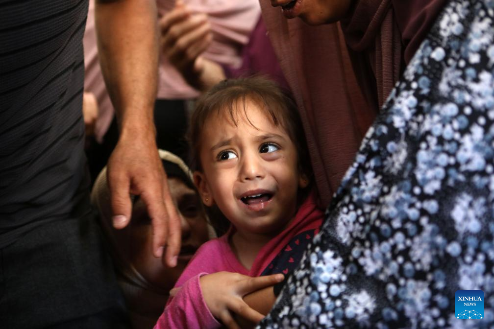 A Palestinian mourns for Mohammed Ahmed Mahmoud al-Hur, 48, who was killed by Israeli settlers in the southern West Bank city of Hebron, June 20, 2025. A Palestinian man was killed and eight others injured on Thursday by Israeli settlers in the southern West Bank city of Hebron, Palestinian sources said. (Photo by Mamoun Wazwaz/Xinhua)