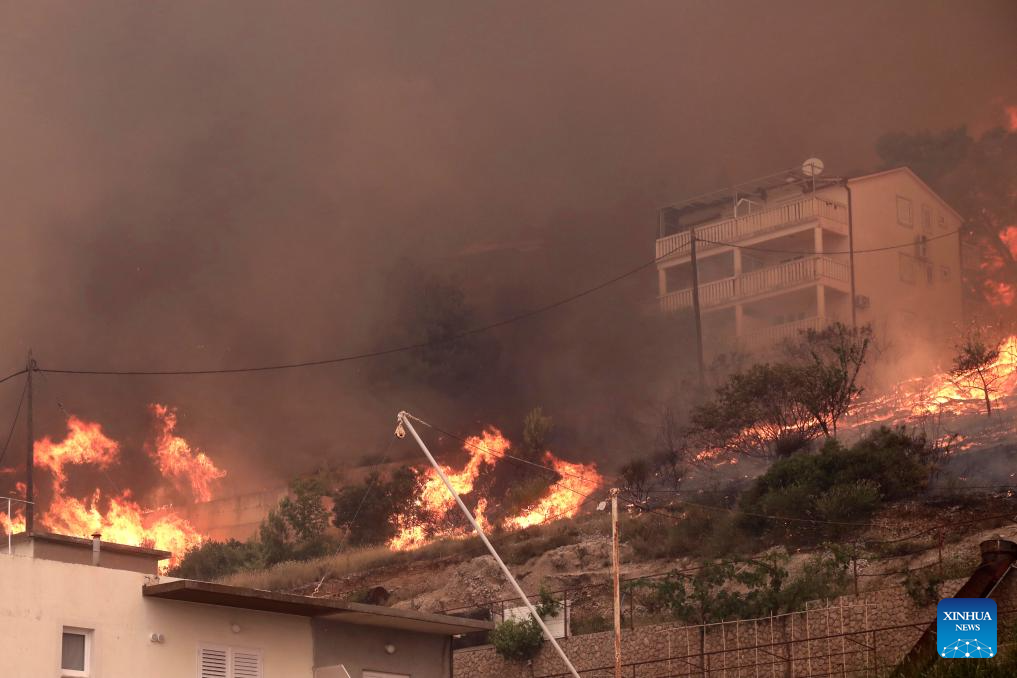 A fire breaks out in Pisak, Croatia on June 21, 2025. (Ivo Cagalj/PIXSELL via Xinhua)