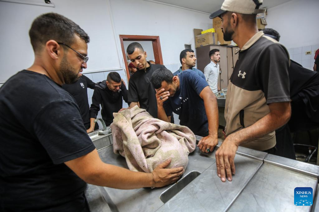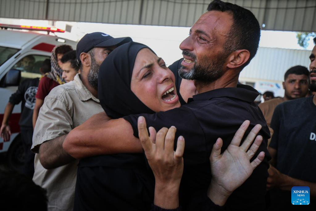 Palestinians mourn for victims killed by an Israeli airstrike inside Al-Shifa Hospital in central Gaza City, on June 20, 2025. (Photo by Rizek Abdeljawad/Xinhua)