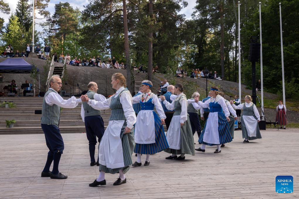 HELSINKI, June 20 (Xinhua) -- Thousands gathered on Helsinki's Seurasaari Island Friday evening to celebrate Juhannus Eve, marking the start of Finland's cherished Midsummer Festival with bonfires and folk traditions.