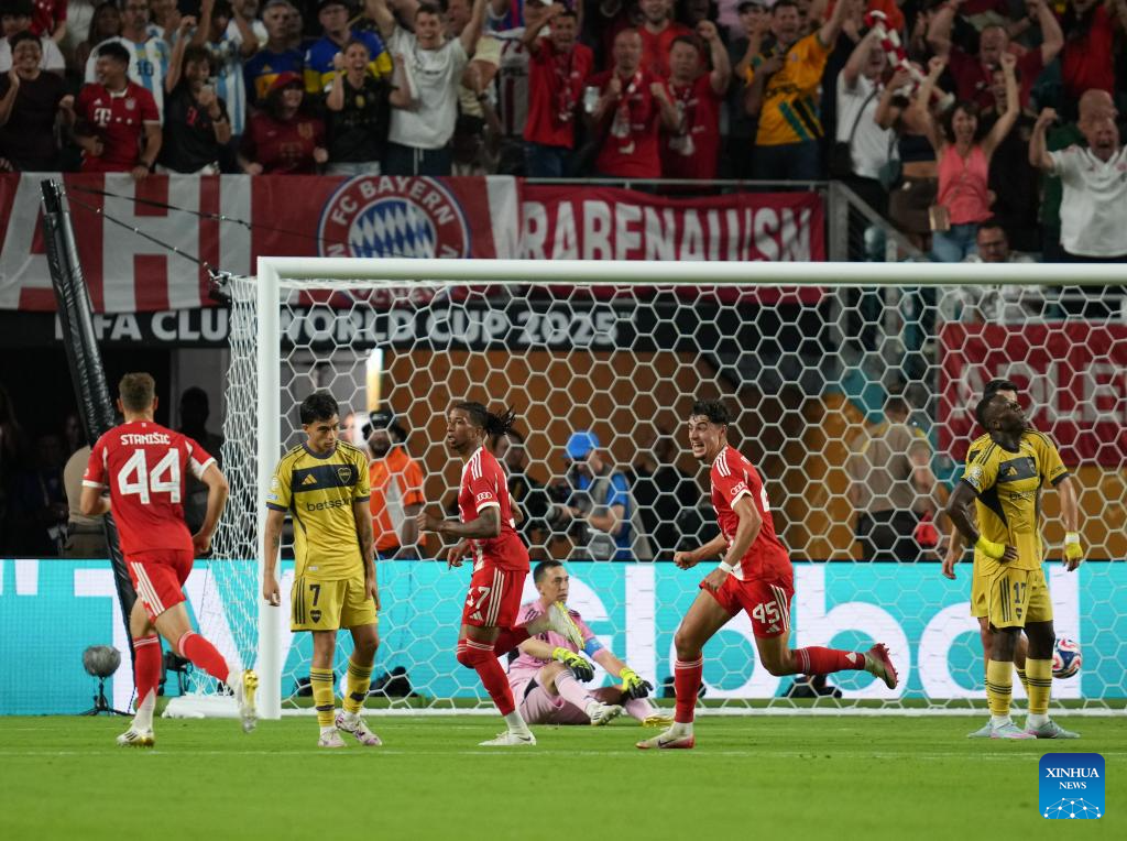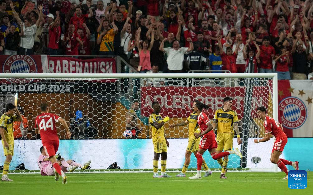 Bayern Munich's Michael Olise (3rd R) celebrates scoring during the group C match between Bayern Munich of Germany and CA Boca Juniors of Argentina at the FIFA Club World Cup 2025 at the Hard Rock Stadium, Miami, the United States, June 20, 2025. (Xinhua/Huang Zongzhi)
