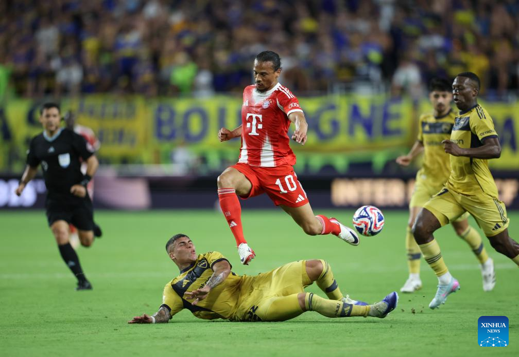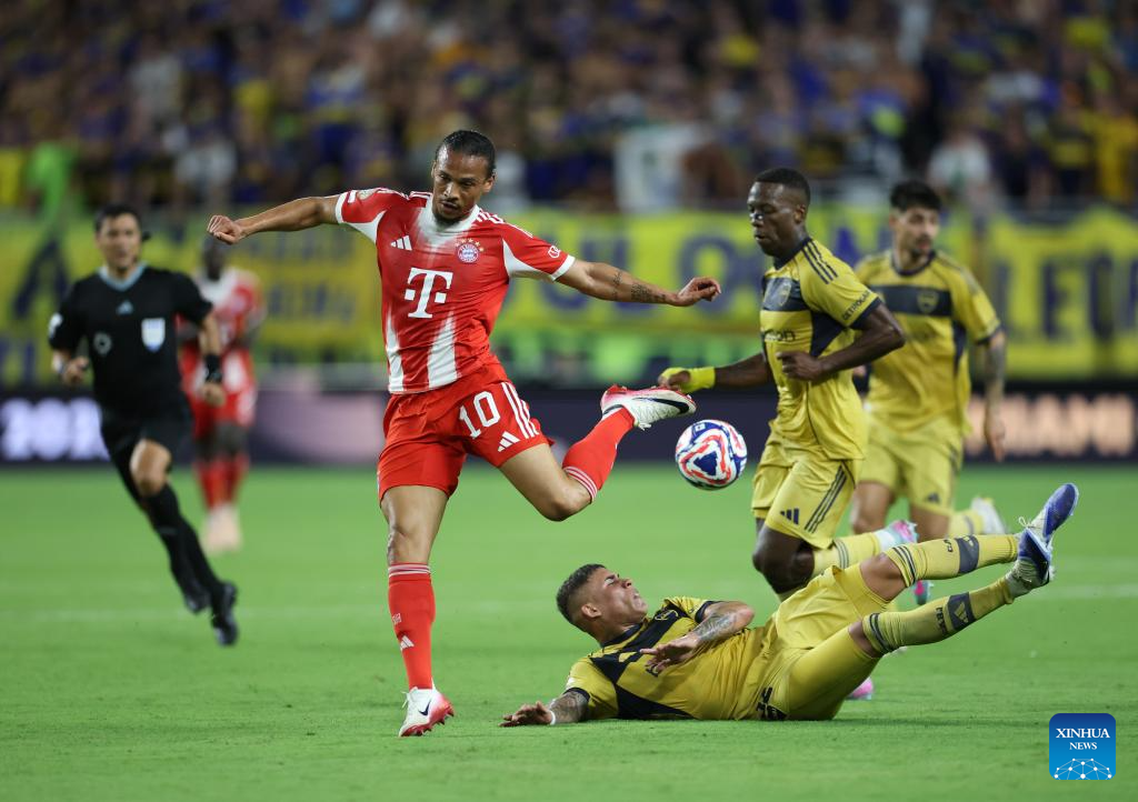 Bayern Munich's Leroy Sane (Front, L) competes during the group C match between Bayern Munich of Germany and CA Boca Juniors of Argentina at the FIFA Club World Cup 2025 at the Hard Rock Stadium, Miami, the United States, June 20, 2025. (Xinhua/Li Ming)