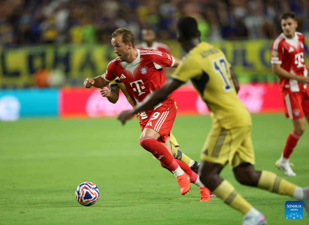 Bayern Munich's Harry Kane breaks through during the group C match between Bayern Munich of Germany and CA Boca Juniors of Argentina at the FIFA Club World Cup 2025 at the Hard Rock Stadium, Miami, the United States, June 20, 2025. (Xinhua/Li Ming)