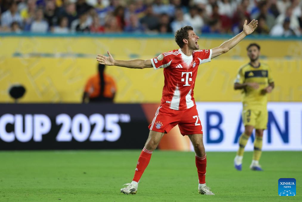Bayern Munich's Thomas Mueller reacts during the group C match between Bayern Munich of Germany and CA Boca Juniors of Argentina at the FIFA Club World Cup 2025 at the Hard Rock Stadium, Miami, the United States, June 20, 2025. (Xinhua/Li Ming)