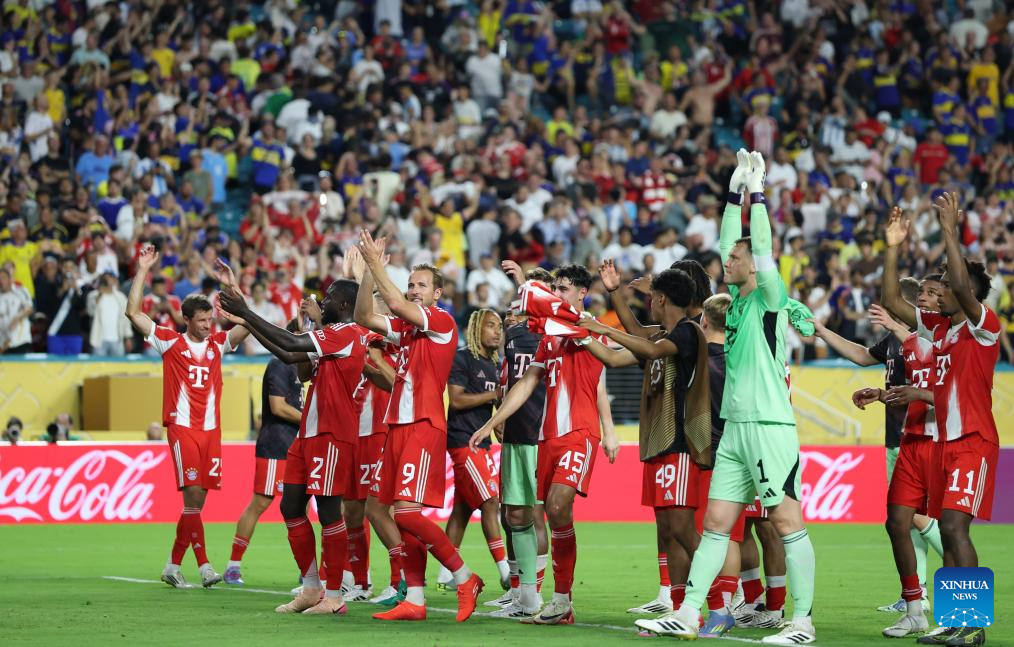 Players of Bayern Munich greet the spectators after the group C match between Bayern Munich of Germany and CA Boca Juniors of Argentina at the FIFA Club World Cup 2025 at the Hard Rock Stadium, Miami, the United States, June 20, 2025. (Xinhua/Li Ming)