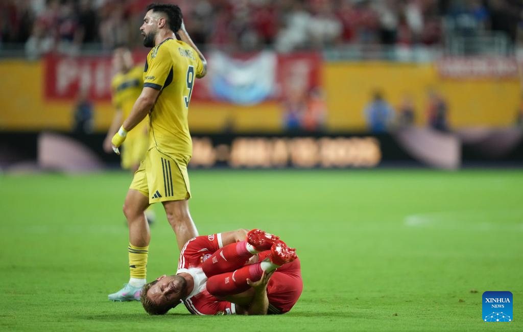 Bayern Munich's Harry Kane (Bottom) reacts during the group C match between Bayern Munich of Germany and CA Boca Juniors of Argentina at the FIFA Club World Cup 2025 at the Hard Rock Stadium, Miami, the United States, June 20, 2025. (Xinhua/Huang Zongzhi)