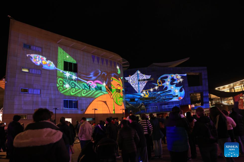 A light show is held to celebrate the Maori New Year at the national museum in Wellington, New Zealand, on June 20, 2025. Various activities were held across the country to celebrate the Maori New Year. (Photo by Meng Tao/Xinhua)
