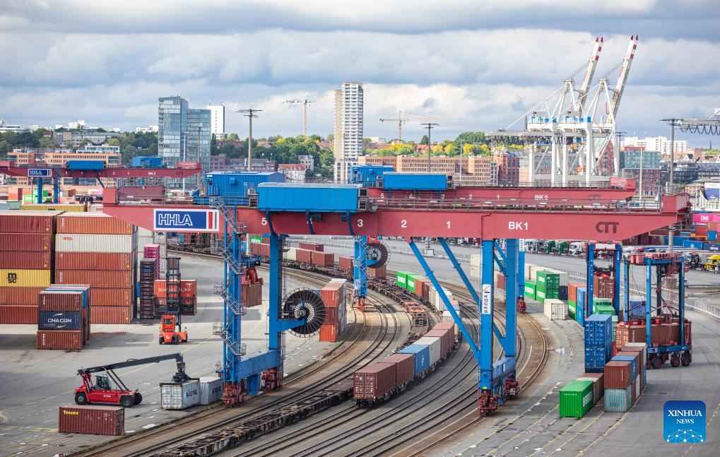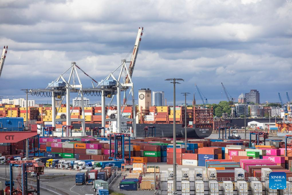 This photo taken on May 28, 2025 shows a view of the Container Terminal Tollerort in Hamburg, Germany. (Xinhua/Zhang Fan)
