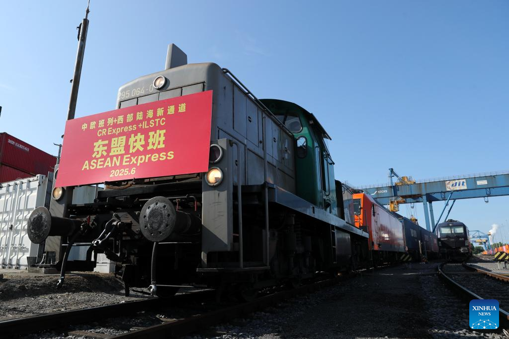This photo shows the launch of the return leg of the ASEAN Express service in Duisburg, Germany, June 21, 2025.