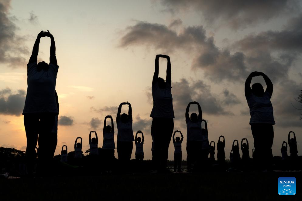 Participants take part in a yoga session to celebrate the International Day of Yoga at Nusa Dua, Bali, Indonesia, June 21, 2025. (Photo by Dicky Bsinglasi/Xinhua)
