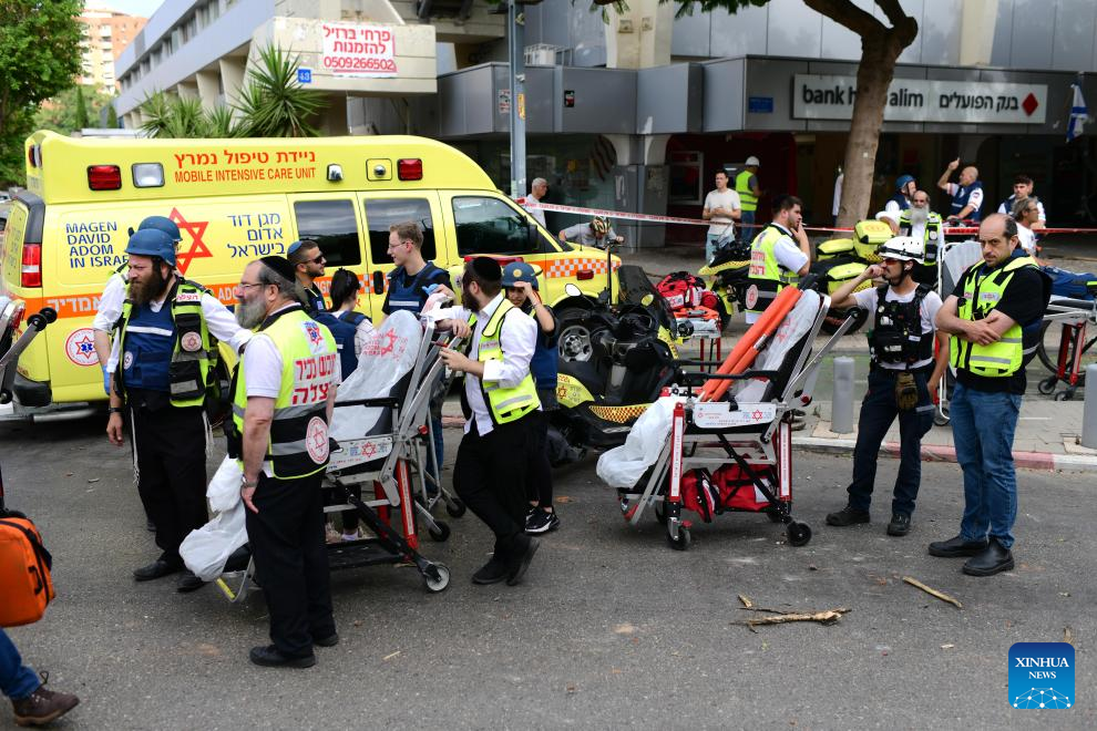 JERUSALEM/TEHRAN, June 22 (Xinhua) -- Ballistic missiles fired from Iran into central and northern Israel on Sunday morning wounded 26 people, two of whom in moderate condition, Israel's national emergency service Magen David Adom reported.
