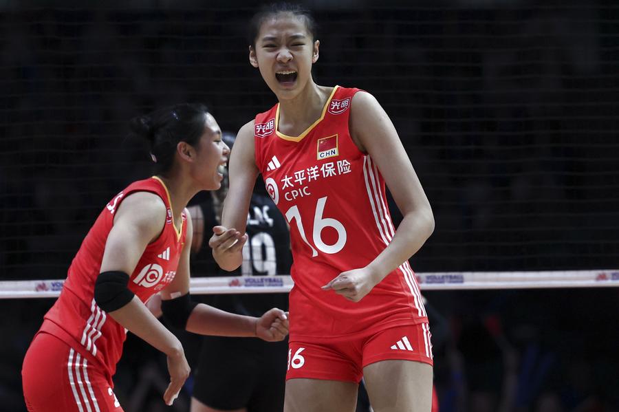 HONG KONG, June 22 (Xinhua) -- A heartfelt moment unfolded on June 18 during the FIVB Women's Volleyball Nations League in Hong Kong when 17-year-old Wang Aoqian, affectionately known as "Little Zhao Ruirui," met her idol, the legendary Zhao Ruirui.