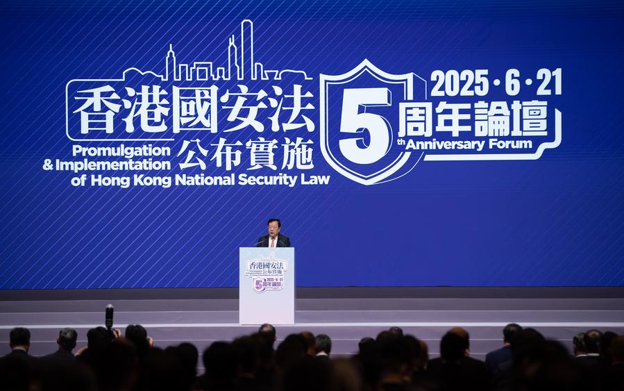 HONG KONG, June 22 (Xinhua) -- The Hong Kong Special Administrative Region (HKSAR) government on Saturday held a forum to mark the 5th anniversary of the promulgation and implementation of the national security law in Hong Kong.