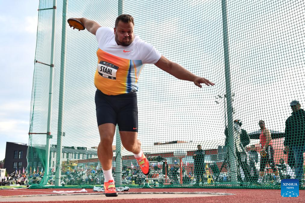 Daniel Stahl of Sweden competes during the men's discus throw event at the World Athletics Continental Tour 2025 Heino Lipp memorial in Johvi, Estonia, June 21, 2025. (Photo by Sergei Stepanov/Xinhua)