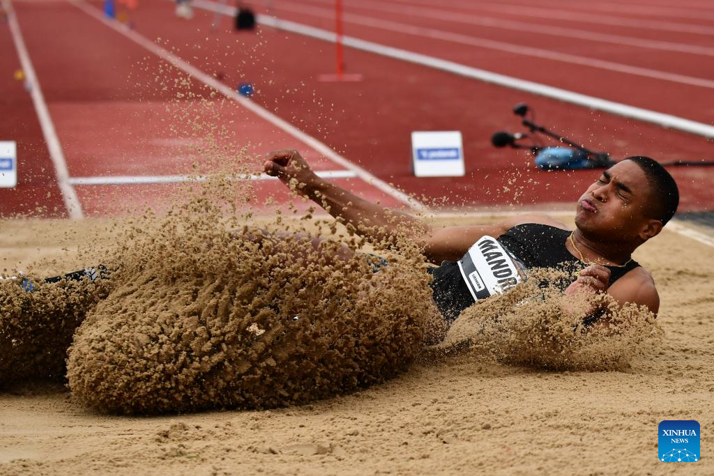 Jose Luis Mandros of Peru competes during the men's long jump event at the World Athletics Continental Tour 2025 Heino Lipp memorial in Johvi, Estonia, June 21, 2025. (Photo by Sergei Stepanov/Xinhua)