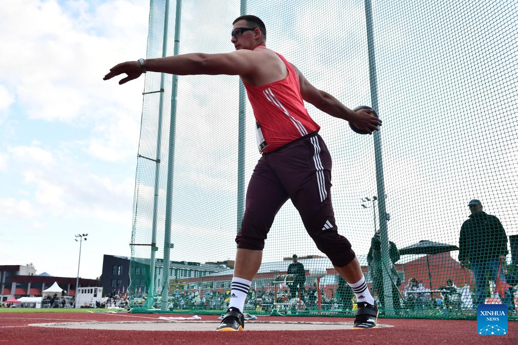 Kristjan Ceh of Slovenia competes during the men's discus throw event at the World Athletics Continental Tour 2025 Heino Lipp memorial in Johvi, Estonia, June 21, 2025. (Photo by Sergei Stepanov/Xinhua)