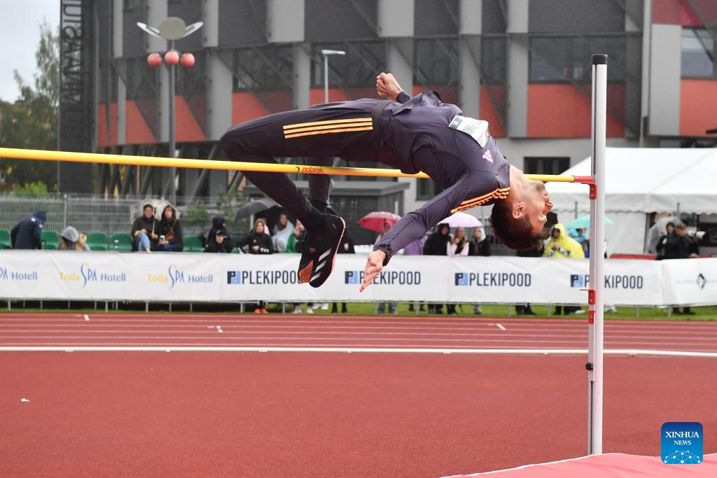 Andrii Protsenko of Ukraine competes during the men's high jump event at the World Athletics Continental Tour 2025 Heino Lipp memorial in Johvi, Estonia, June 21, 2025. (Photo by Sergei Stepanov/Xinhua)