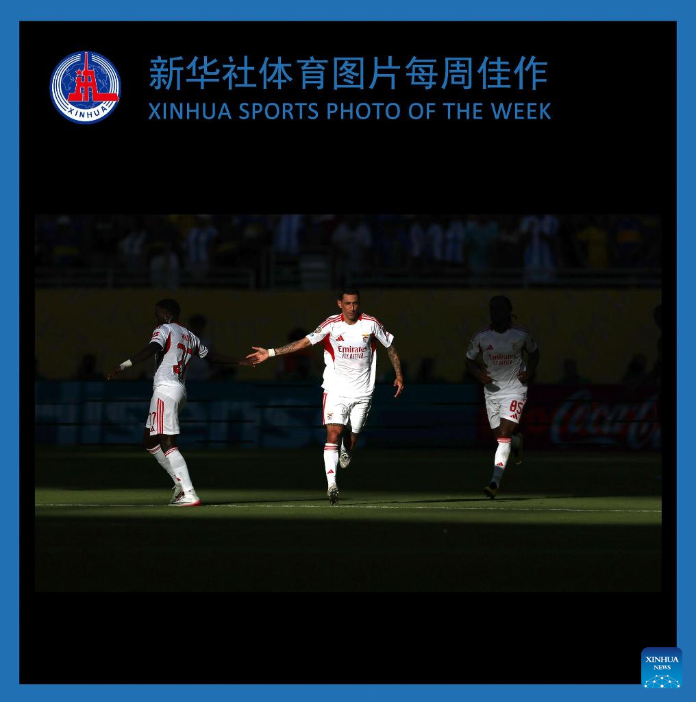 Angel Di Maria (C) of SL Benfica celebrates after scoring during the group C match between CA Boca Juniors of Argentina and SL Benfica of Portugal at the FIFA Club World Cup 2025 at the Hard Rock Stadium, Miami, the United States, June 16, 2025. (Xinhua/Li Ming)