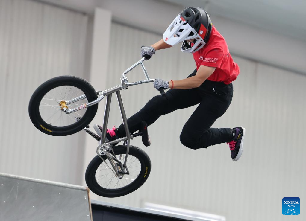Sun Jiaqi of team Henan competes during the women's elite division final of 2025 China BMX Freestyle League in Qinhuangdao, north China's Hebei province, June 22, 2025. (Xinhua/Yang Shiyao)